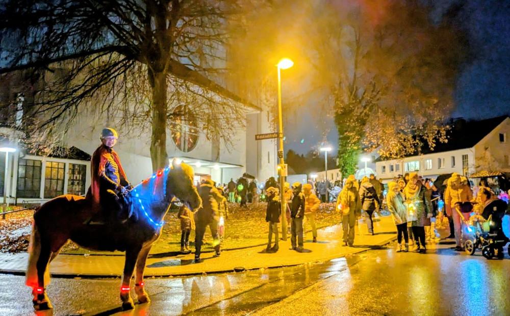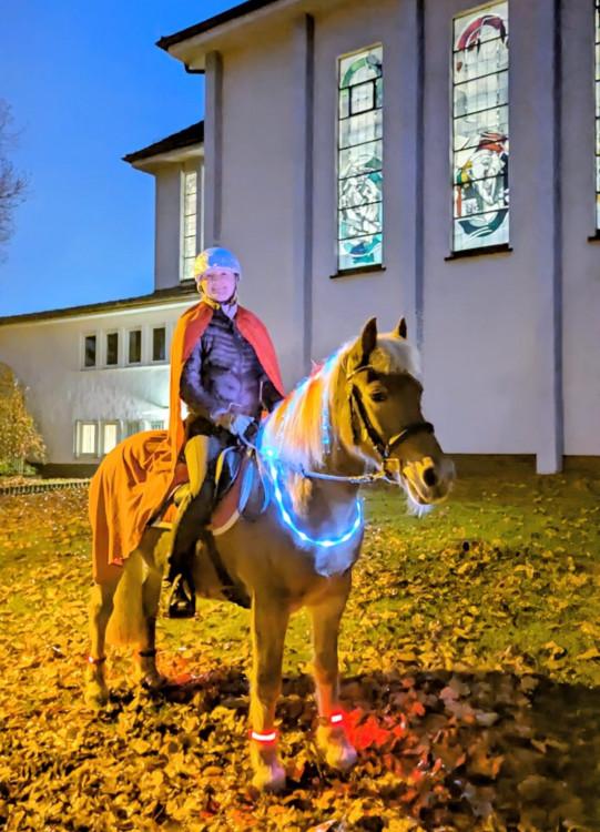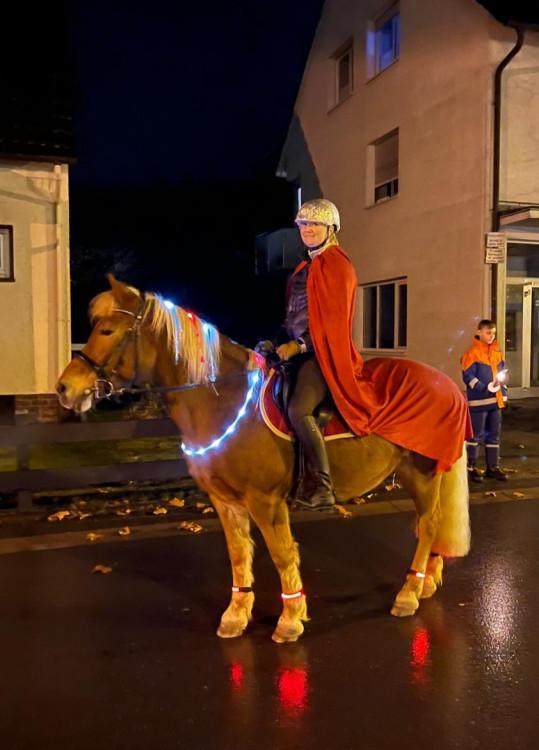 Anschließend zogen mehr als 200 Kinder und Erwachsene mit ihren Laternen durch die Straßen rund um die Kirche und wurden dabei von Sankt Martin auf seinem Pferd sowie vom Blechbläserensemble der Musikschule Höxter begleitet.