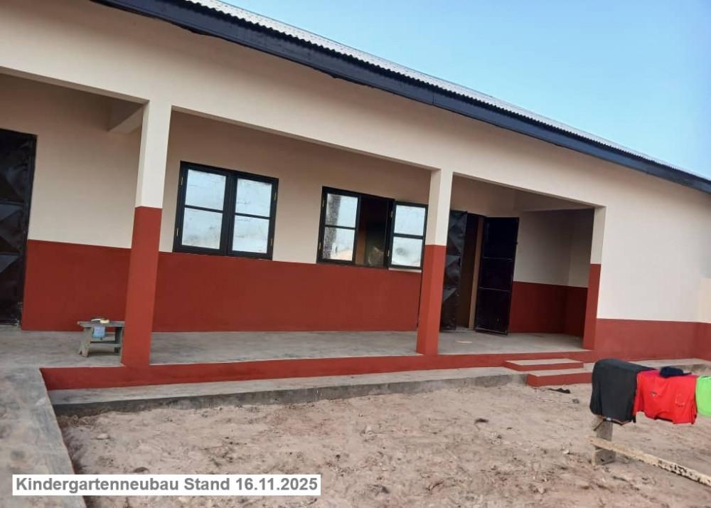 Gemeinsam mit der Kath. Kirchengemeinde St. Georg in Saerbeck konnten Spenden für den Bau eines neuen Kindergartengebäudes gesammelt werden. Der Bau steht kurz vor seiner Vollendung und im Januar 2026 werden Vertreter des Vereins Anidaso Ghana sowie der Kirchengemeinde Saerbeck nach Damongo fliegen, um den Neubau einzuweihen.
