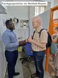 Dr. Prince hat im vergangenen Jahr in eine Tagesklinik in Tema investiert, in der er den Menschen eine medizinische Grundversorgung anbieten kann. Diese Räume besuchten wir mit großem Interesse und konnten uns vom vielfältigen medizinischen Angebot überzeugen.